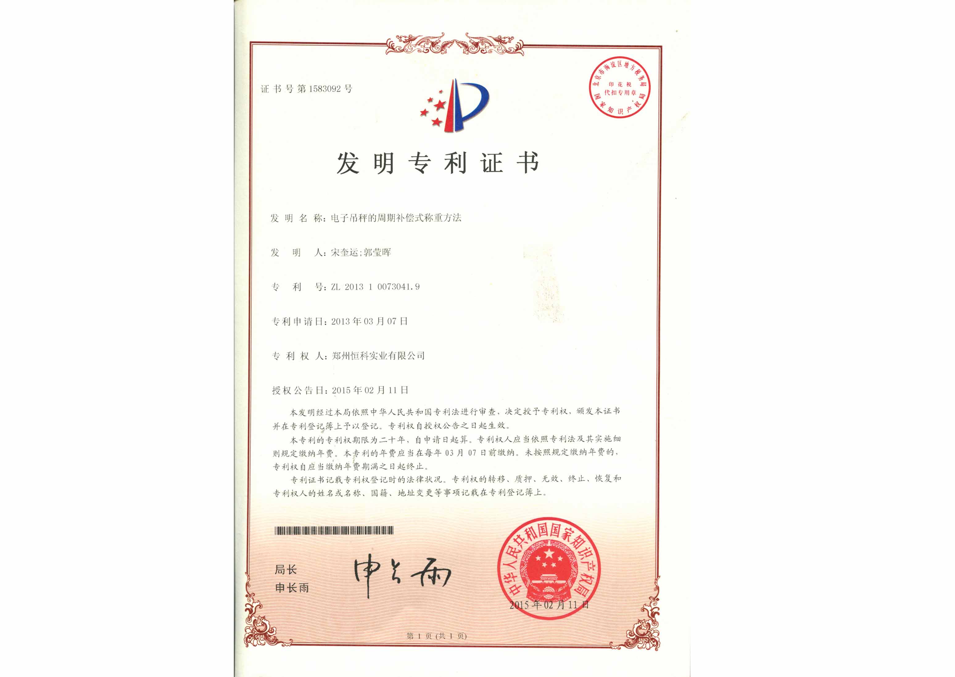 • 電子吊秤的周期補償式稱重方法專利 專利號:ZL201310073041.9