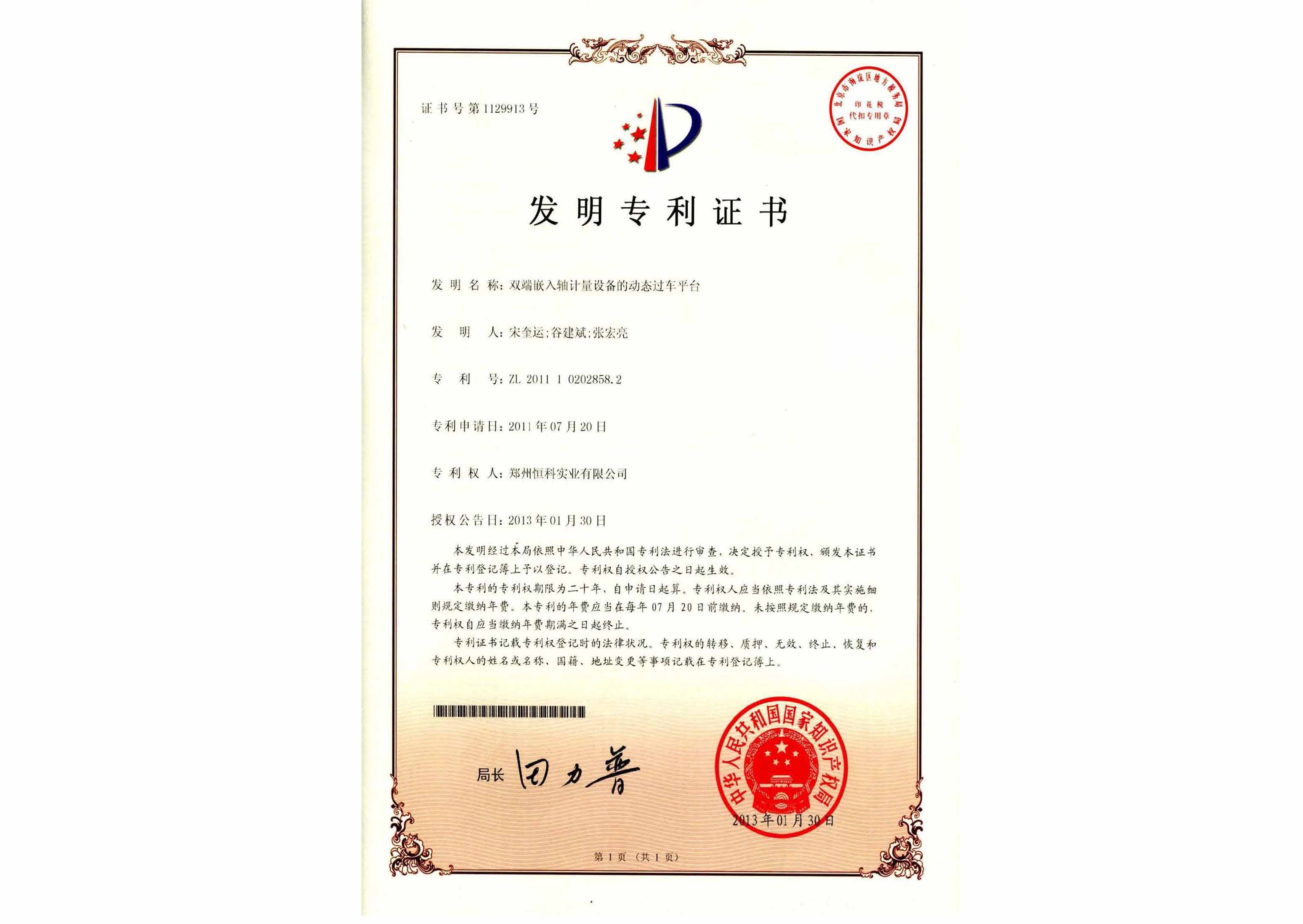 • 雙端嵌入軸計量設備的動態過車平臺專利 專利號:ZL201110202858.2